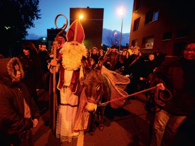 Le Père Fouettard qui l’accompagne, et qui punit les bêtises quand lui récompense la sagesse, est une invention plus tardive. Il rappelle le boucher de la légende. On raconte que ce sont les Lorrains qui auraient inventé la figure de son alter ego maléfique, Rubbelz, «Robert à la fourrure», que les Belges appellent Zwarte Piet. Enfin, la monture de l’évêque ajoute encore à l’humilité du personnage : l’âne de Saint Nicolas est aussi célèbre que celui de Jésus ou celui de Saint Martin… Il n’est pas trop tard pour que vos enfants écrivent une lettre à ce saint si populaire : un service de la poste belge leur répondra volontiers… Voici l’adresse : Saint Nicolas, Rue du Paradis no 1, 0612 CIEL…