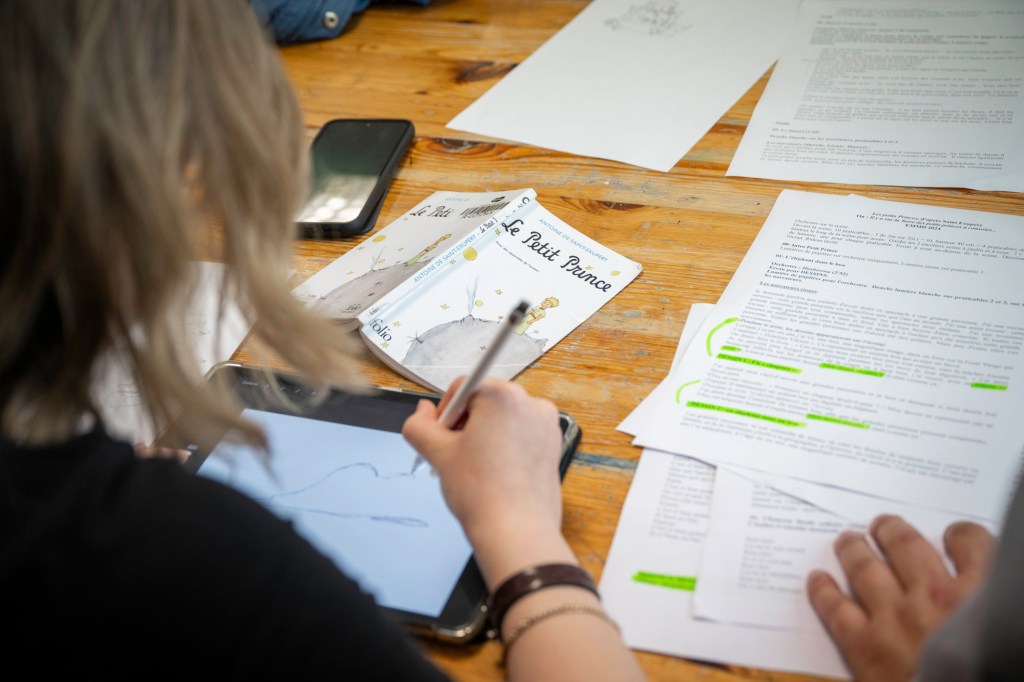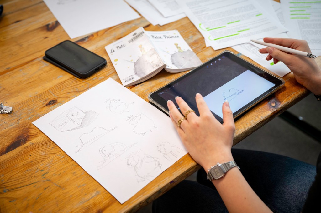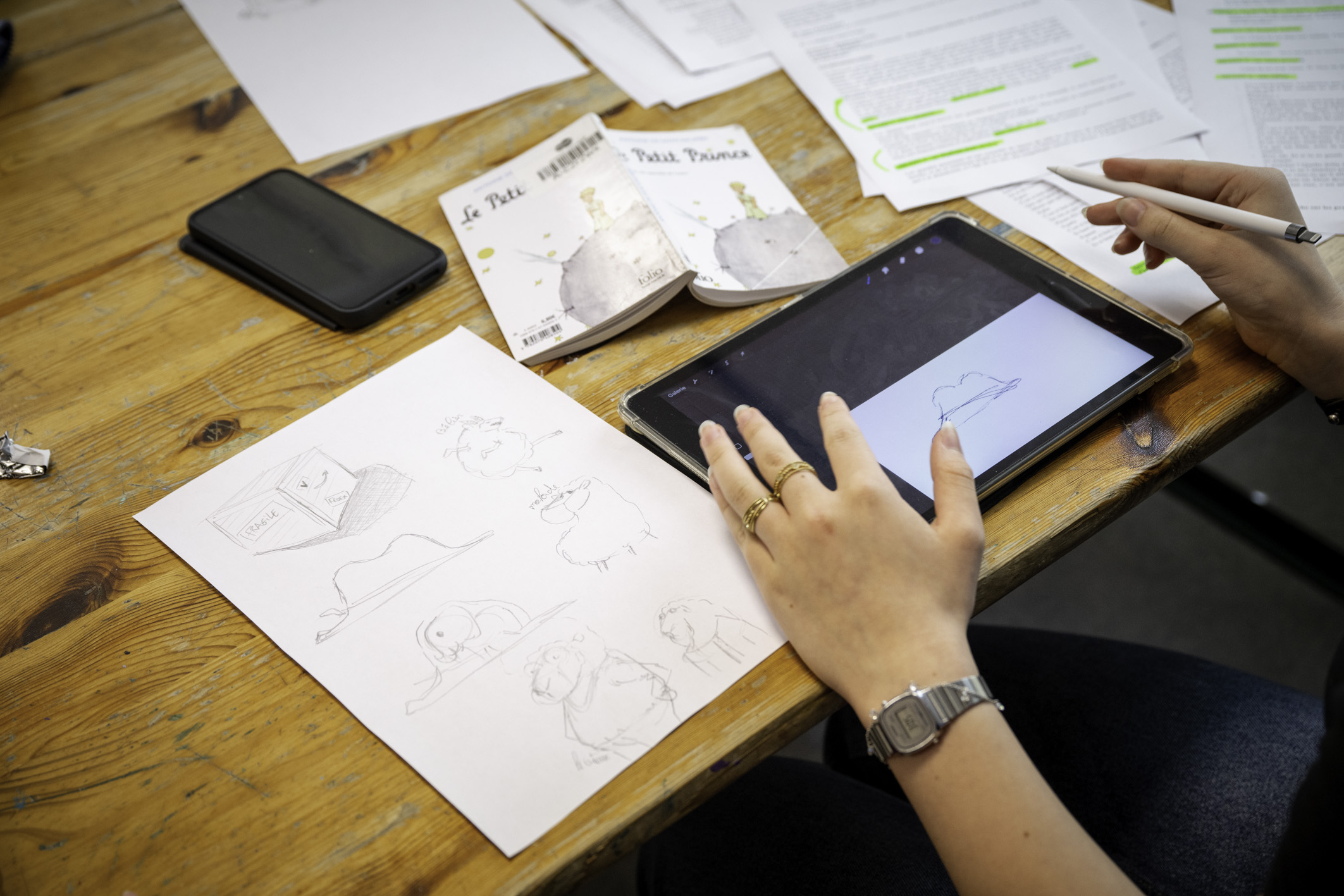 Car l’aviateur dessine. Saint Exupéry a lui-même illustré son récit. Et ses dessins sont restés célèbres… C’est donc un tour de force accompli par Maxence Larue et ses élèves de l’Ecole des Beaux Arts de Coudekerque-Branche que de « réécrire » les planches originales de Saint Ex. Objectif atteint… un avant-goût ici :