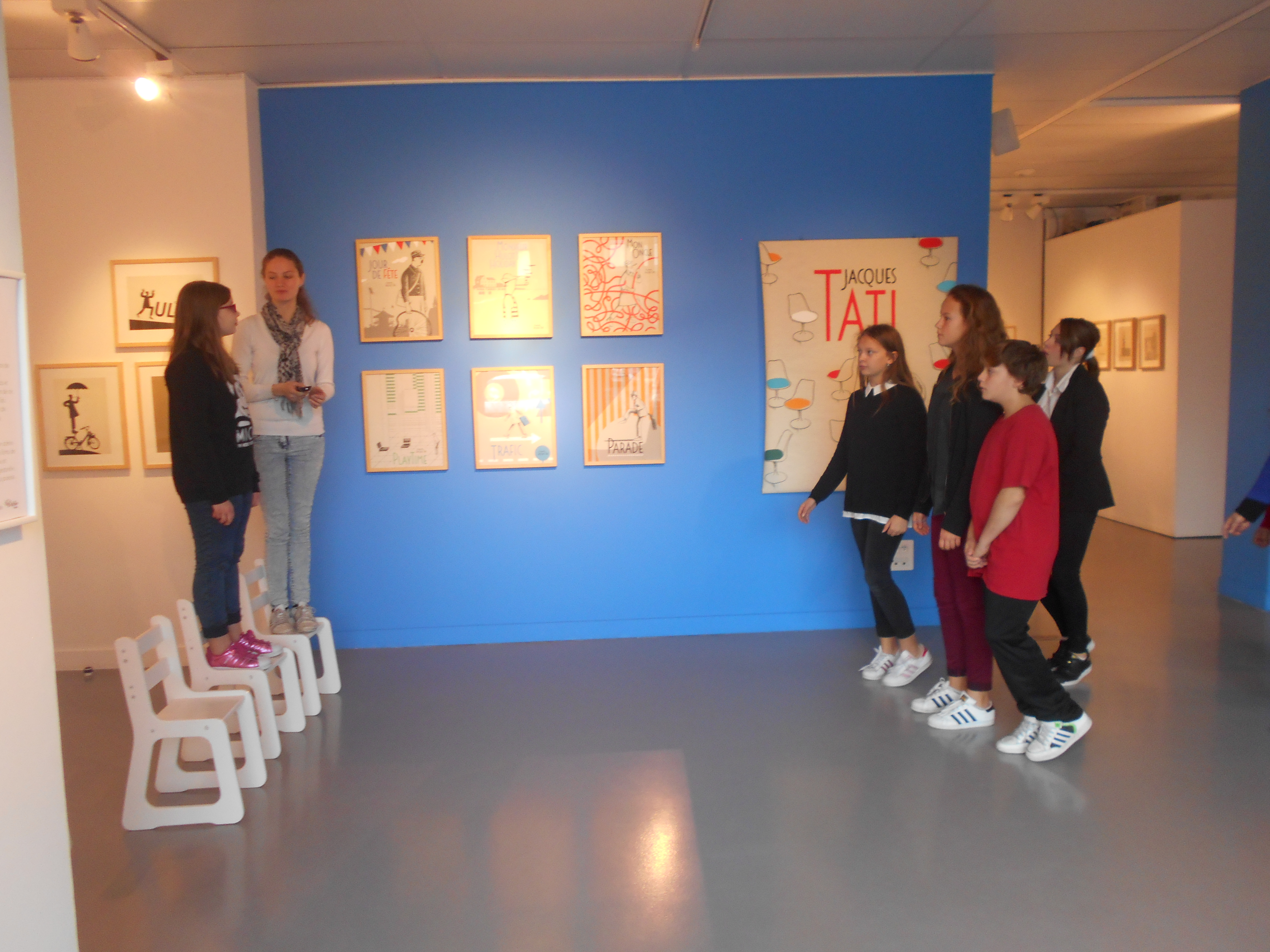 Ils sont 15 ado. De 11 à 15 ans. Et ils se sont emparés de l’univers de Jacques Tati avec une audace folle. Il faut dire qu’ils sont dirigés par la main expérimentée de Brigitte Mounier, directrice de La Cie des Mers du Nord. Et certains fréquentent l’atelier théâtre de leur professeure, Mme Tricot, depuis leur arrivée en 6ème, au collège. Jules Verne, de Grande Synthe. Pourquoi Jacques Tati ? Parce que la Galerie Robespierre propose jusqu’au 10 novembre une exposition haute en couleurs : Monsieur Hulot s’expose, de David Merveille, illustrateur, qui s’est emparé du petit monde cinématographique de Tati pour réaliser des œuvres uniques. Et c’est dans ce cadre, entre Jour de Fête et Les Vacances de Monsieur Hulot, que les élèves de l’Atelier Scène vont clôturer l’expo. Suivez le guide…