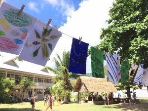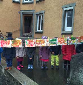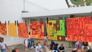 Je suis heureuse de faire participer nos élèves à ce projet international, de leur laisser, le temps de quelques heures, le matériel d’arts plastiques pour une expression graphique très libre. Comme un temps de récréation. La Grande Lessive est un joyeux prétexte qui permet aux talents de sortir de la classe ! Et c’est très poétique de voir ces farandoles de papier jouer avec le vent… mais si j’ai quand même un peu peur pour l’installation …
