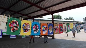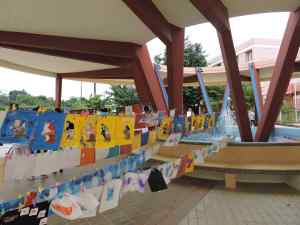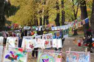 Adieu cimaises et grilles. On tend des fils là où on peut. Cour d’école. Parc. Square. Hall d’immeuble. Et on accroche. Deux pinces à linge, et le tour est joué. Photo, dessin, collage, photo montage… la technique et les moyens utilisés sont libres. Et c’est beau ! Finalement, ce n’est pas difficile de créer de la beauté et de l’harmonie, à plusieurs, avec peu de moyens, beaucoup de créativité et d’imagination. Et deux pinces à linge… Voici quelques clichés capturés aux éditions précédentes ; voyez comme c’est beau :